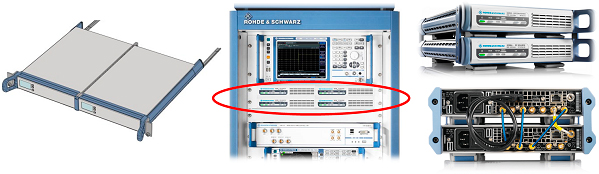 Компактный дизайн генератора SGT100A делает его идеальным для совместной работы с аналогичным оборудованием, специально разработанным для автоматических измерительных систем (например с анализатором спектра FPS). Если требуется разместить приборы бок о бок на рабочем столе, можно воспользоваться специальным набором SGS-Z8, содержащим необходимый механический крепеж. А при установки в 19-дюймовой измерительной стойке потребуется комплект для установки ZZA-KN20 - прибор занимает ровно половину пространства. При желании, можно разместить сразу два генератора (комплект установки ZZA-KN21).
