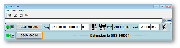 Управление генератором осуществляется при помощи приложения SGMA-GUI (входит в комплект поставки прибора), устанавливаемого на внешнем ПК. Данное ПО может управлять сразу 12 приборами через различные комбинации интерфейсов LAN, USB, PCIe. В специализированных окнах панели управления графического интерфейса устанавливаются и редактируются требуемые параметры. Кроме этого, может изменяться список доступных приборов, некоторые из них могут быть деактивированы, но оставлены в списке для использования в будущем.